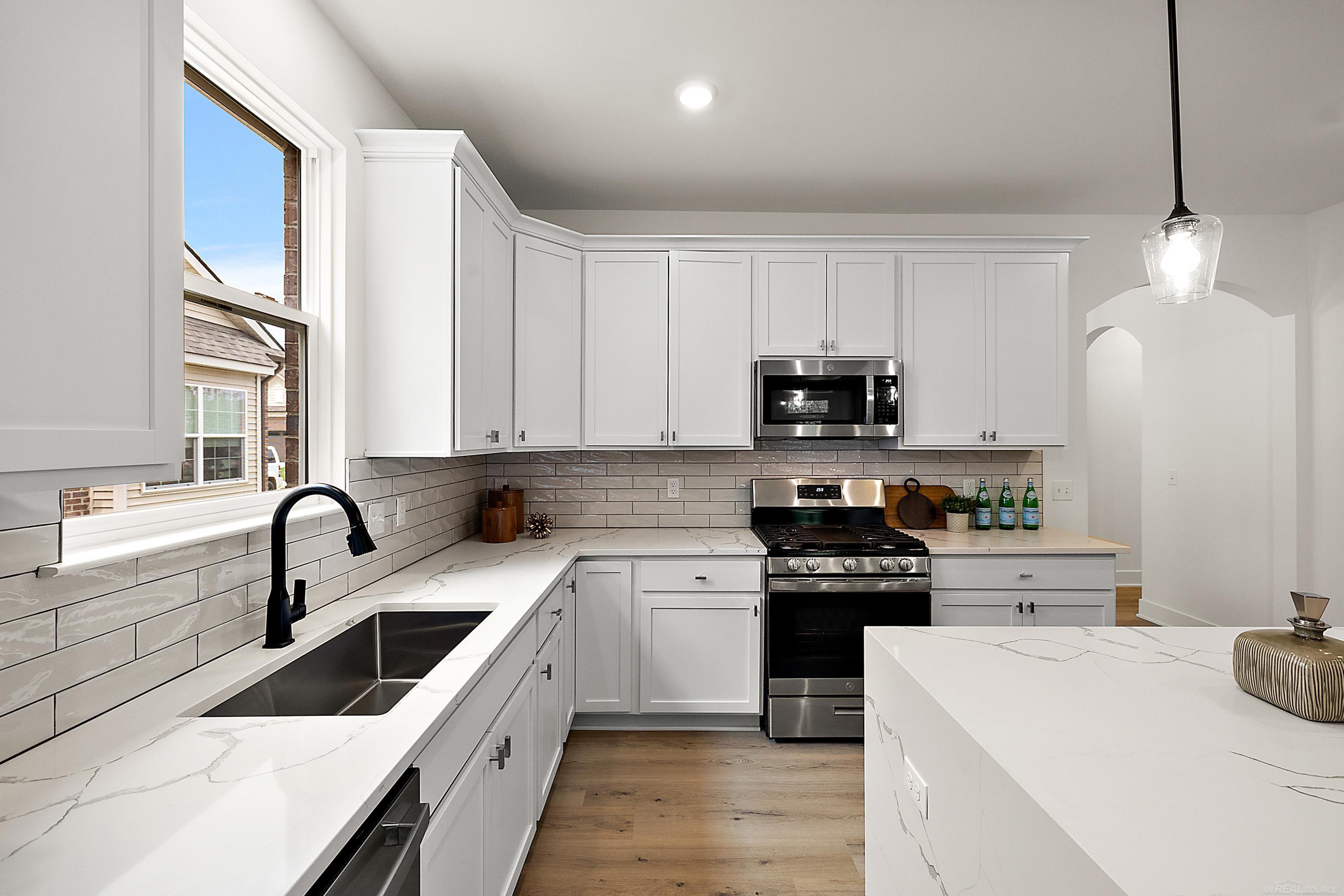 New construction Gated Community & READY NOW! Why wait to build when this MODEL HOME condo is ready NOW including a walkout basement w/no maintance Trex deck overlooking the George George Park & matured tree line. AWESOME! Step into the open design w/11' ceiling in Foyer & featuring Kitchen w/waterfall island, shaker cabs, quartz tops, backsplash & SS APPLS. Dining RM is bright w/box out 3 pane window & seats 10. Open to Great RM featuring double step up ceiling, crown molding, recessed lights and gas FP. Retreat to the luxe Primary ensuite w/more views of the park & nature- enjoy custom trim feature wall w/accent paint, private bath w/dual sinks, large walk-in shower w/door, water closet & WIC w/custom built-in shelving. A 2nd bedroom or Study w/full bath provide comfort for guests on the 1st floor. Additional conveniences include a 1st floor laundry rm w/storage cabinets. The basement boasts a large open entertaining area w/a walkout doorwall leading to concrete cement pad. Mechanicals include a 50-gallon hwt, high efficency furnace/central air & 150 electrical panel. Step outside to enjoy the Trex deck, ideal for relaxing/grilling. All of this in a prime location!—Keys at closing – welcome home!